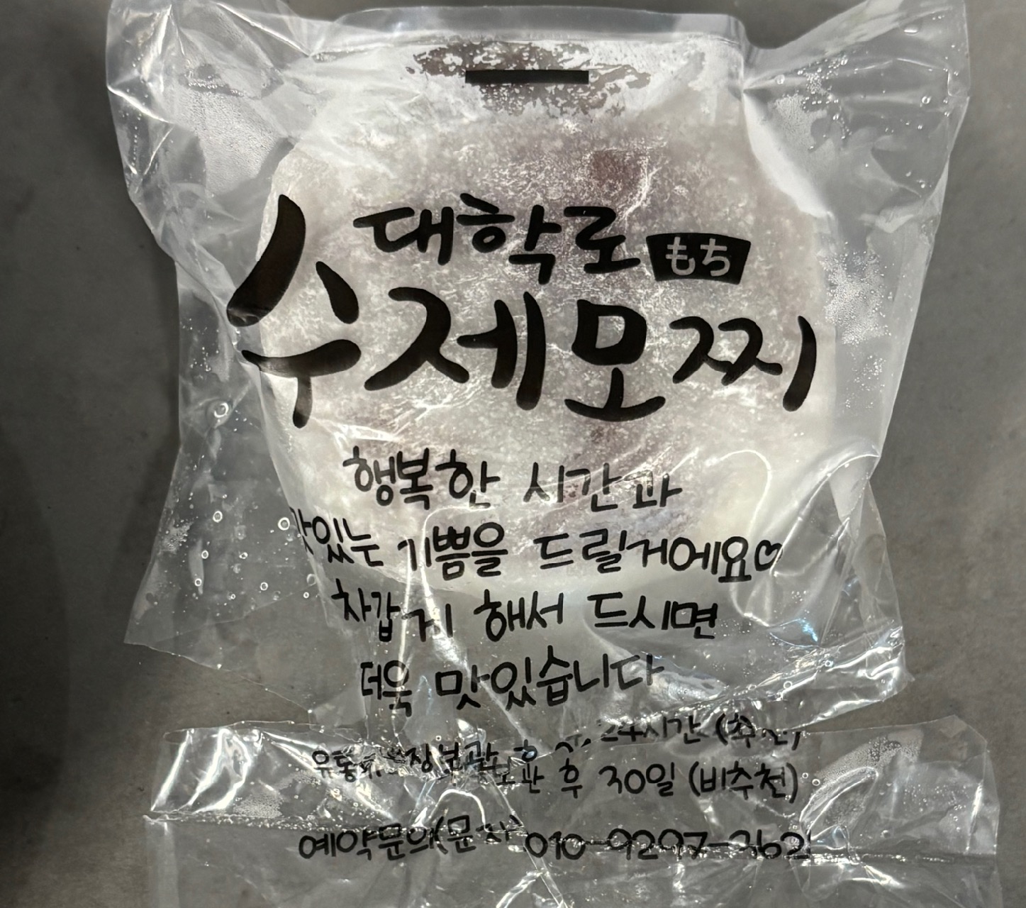 대학로 수제모찌 행복한 시간과 맛있는 기쁨을 들릴거라 써있는데 문제는 주문할때 사장이 너~~~무 불친절하다.
